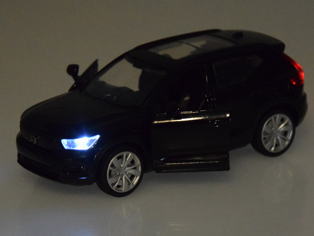 Po otwarciu drzwi auta metalowego Volvo XC40 usłyszymy odgłos otwierania auta z kluczyka. Dociśnięcie pojazdu do podłoża uruchamia odgłos odpalania i pracy silnika. Efektom dźwiękowym towarzyszą światła z przodu oraz z tyłu samochodu. Cała karoseria pojazdu jest metalowa, koła gumowe, podwozie wykonane jest z plastiku.