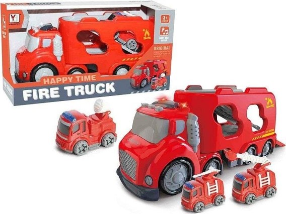 auto z kontenerem i 2 autkami straży pożarnej, światło, dźwięk; 30x10,5x16cm, W/B