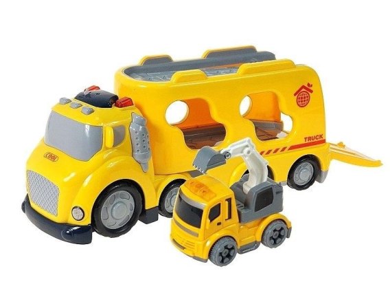 auto z kontenerem i autem budowlanym, światło, dźwięk; 30x10,5x16cm, W/B