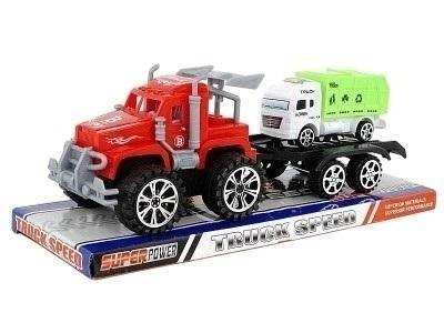 Auto z lawetą i autem, napęd na koło zam; 36x14x13cm, PVC.