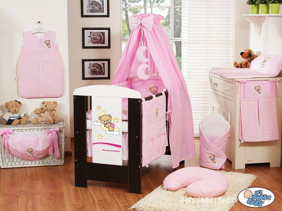 - Duży baldachim bawełniany160x250 cm - najdłuższy i najszerszy na, dzięki czemu można go ładnie ułożyć wokół łóżeczka, ozdobnie pomarszczyć lub nawet umocować na dłuższym boku łóżeczka. Baldachim jest długi niemal do ziemi, poniżej dolnych szczebelków łóżeczka, nie będzie więc wpadał do wewnątrz nawet przy materacu opuszczonym na najniższym poziomie łóżeczka - jak to się niestety często dzieje przy tańszych pościelach, oszczędnie krojonych. Wykonana z tkaniny 100% bawełnianej, posiadającej atest Okotex lub TUV.