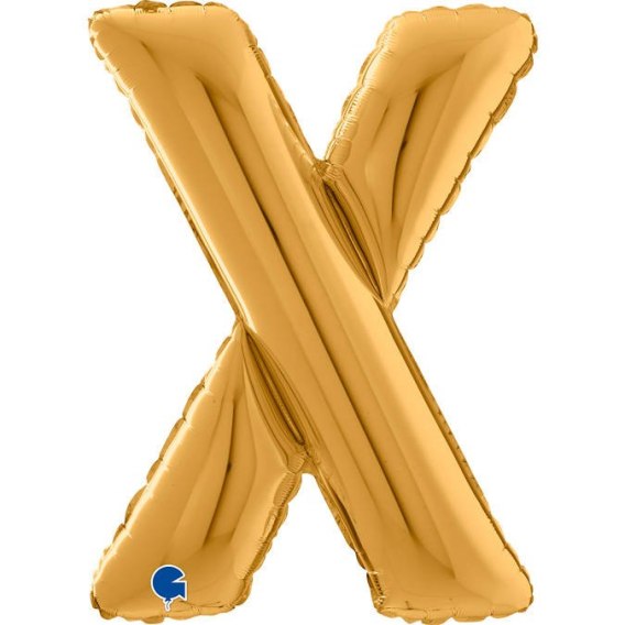 Balon foliowy metalizowany Litera X w kolorze złotym, w nowym kształcie slim 66 cm.