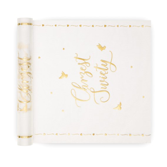 Podkreśl wyjątkowy charakter uroczystości Chrztu Świętego z naszym eleganckim bieżnikiem z organzy. Delikatny, przejrzysty materiał ozdobiony złotymi motywami graficznymi i napisem "Chrzest Święty" stanowi subtelny, a zarazem wyrafinowany element dekoracji stołu, który zachwyci Twoich gości.