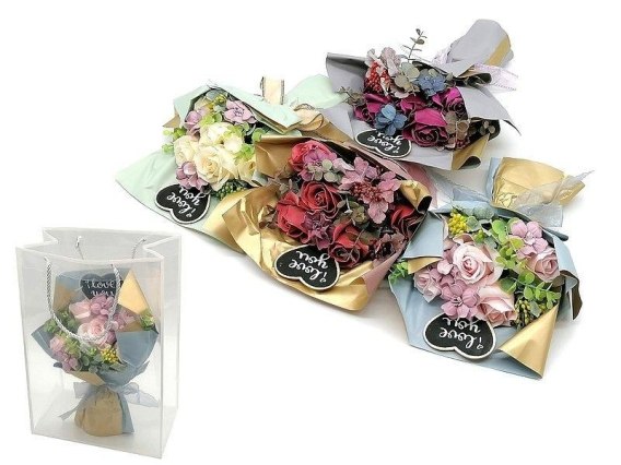 bukiet róż w ozdobnej torebce 30x15x20cm; PVC