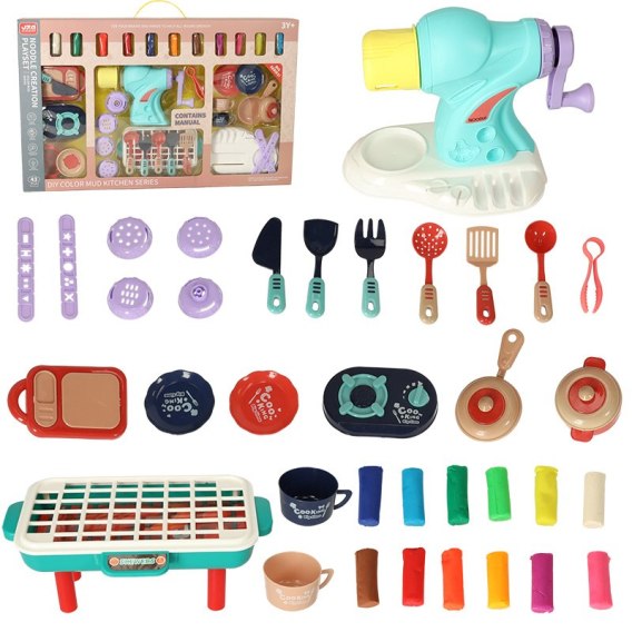 Główne urządzenia - maszyna do makaronu, kuchenka i grill pozwolą na przygotowanie dań z masy plastycznej. A liczne akcesoria dodatkowo ułatwią cały proces!