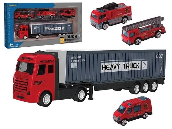 auto ciężarowe z kontenerem 23x6x4cm, metalowe, z autami; 31x16x4cm, W/B