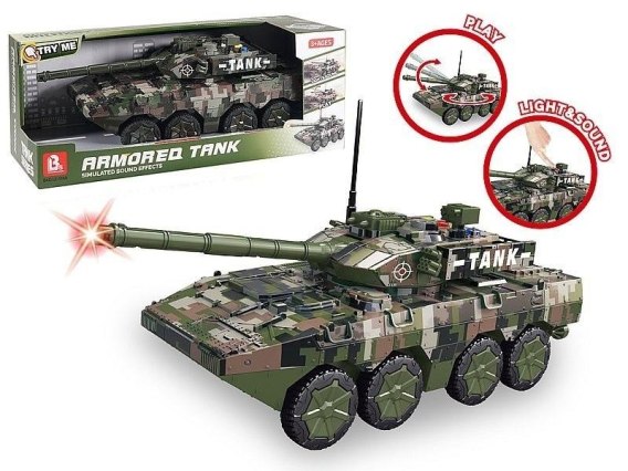 pojazd wojskowy, światło, dźwięk; 31x17,5x12cm, W/B