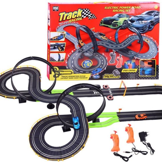 Okazały tor pozwoli na zabawę dwójce rajdowcom. Zestaw wykonany bardzo efektownie nie wymaga użycia baterii, pojazdy zasilane są za pomocą zasilacza. Gigantyczny tor o długość 787cm z dwoma dużymi pętlami, prostymi, zakrętami chronionymi przez bandy zapewni mnóstwo emocji małym i dużym fanom Formuły 1. Tot wyposażony w automatyczny licznik, który sumuje ilość przejechanych okrążeń, żeby nie było nie jasności kto wygrał. Sterowanie pojazdami odbywa się za pomocą dwóch pilotów, które zostały wyposażone w opcję dodawania gazu.