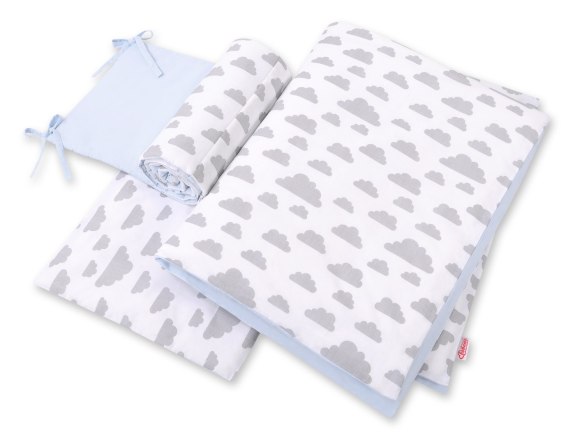 Dwustronna pościel 3-cz z ochraniaczem - chmurki szare/niebieski