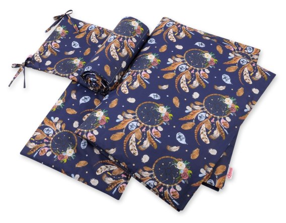 Dwustronna pościel 3-cz z ochraniaczem - łapacze snów granatowe