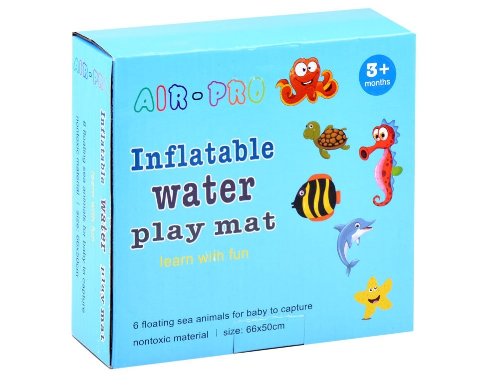 Edukacyjna dmuchana mata to propozycja dla najmłodszych oraz troszkę większych pociech. Mata została wykonana z wysokiej jakości materiału. Wystarczy nadmuchać krawędź maty powietrzem, a środek wypełnić wodą. Dzięki wodzie w środku maty elementy w kształcie zwierząt morskich zaczną się przemieszczać zachęcając dziecko do zabawy i skupienia. Mata sprawdzi się świetnie w pokoju podczas zabaw, ale także można ją zabrać ze sobą na plenerową wycieczkę lub wakacje.