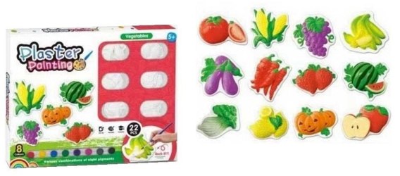 Figurki gipsowe - warzywa do malowania 43x3x34,3cm Zestaw do kreatywnego malowania. W zestawie gipsowe figurki-warzywa do malowania, farbki do malowania, pędzelek