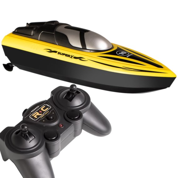 Zdalnie sterowana łódka - motorówka - ścigacz wodny. Prędkość maksymalna to aż ponad 15km/h, czyli tyle ile biegnie sportowiec amator na średnim dystansie! Zaawansowany pilot to nie tylko kontrola prędkości i różne tryby pracy, ale też alarm niskiego poziomu baterii łódki.