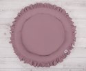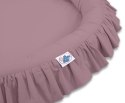 Oryginalne gniazdko z falbanką. Funkcjonalne i praktyczne. Doskonale sprawdzi się jako mini basenik, mata do zabawy lub "podłoga" baldachimu. Szerokie, okrągłe i mięciutkie ścianki zapewnią bezpieczną i udaną zabawę dla każdego malucha. Gniazdko może być używane już od pierwszych dni życia jako wygodny i bezpieczny kokon niemowlęcy a później jako przytulne miejsce do zabawy. Pokrowiec wykonany jest z tkaniny 100% bawełnianej, posiadającej atest Okotex. Boki gniazdka wypełnione są atestowanym włóknem Eco Fillball – mięciutkim włóknem uformowanym w malutkie kuleczki. Dzięki specjalnej technologii produkcji kuleczki te są puszyste i sprężyste, a przy tym w dotyku są miękkie i delikatne jak puch, zapewniają odpowiednią cyrkulację powietrza. Dno gniazdka, to specjalna wkładka wykonana z nowoczesnego antyalergicznego atestowanego surowca. Gniazdko łatwo utrzymać w czystości, pokrowiec jest rozbieralny - można prać w pralce w 30 stopniach.