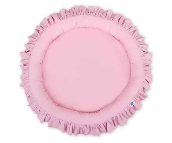 Oryginalne gniazdko z falbanką. Funkcjonalne i praktyczne. Doskonale sprawdzi się jako mini basenik, mata do zabawy lub "podłoga" baldachimu. Szerokie, okrągłe i mięciutkie ścianki zapewnią bezpieczną i udaną zabawę dla każdego malucha. Gniazdko może być używane już od pierwszych dni życia jako wygodny i bezpieczny kokon niemowlęcy a później jako przytulne miejsce do zabawy. Pokrowiec wykonany jest z tkaniny 100% bawełnianej, posiadającej atest Okotex. Boki gniazdka wypełnione są atestowanym włóknem Eco Fillball – mięciutkim włóknem uformowanym w malutkie kuleczki. Dzięki specjalnej technologii produkcji kuleczki te są puszyste i sprężyste, a przy tym w dotyku są miękkie i delikatne jak puch, zapewniają odpowiednią cyrkulację powietrza. Dno gniazdka, to specjalna wkładka wykonana z nowoczesnego antyalergicznego atestowanego surowca. Gniazdko łatwo utrzymać w czystości, pokrowiec jest rozbieralny - można prać w pralce w 30 stopniach.
