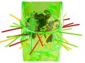 W otwory w naszej wieży układamy gałęzie - kolorowe słomki - po 7 z każdego koloru. Z góry w otwór wieży, wrzucamy wszystkie małpy tak, aby zawisły na gałęziach/bierkach. Jeżeli któraś małpka spadnie na podstawę, podnosimy ją i wrzucamy od góry aż wszystkie będą wisiały na gałęziach. Po rozpoczęciu gry, każdy gracz po kolei ostrożnie wyciąga słomkę w dowolnym kolorze. Małpki, które spadną na sam dół, gracz kładzie przed sobą. Na koniec gry podliczamy nasze naczelne. Wygrywa osoba, która strąciła z wieży najmniej małpek.