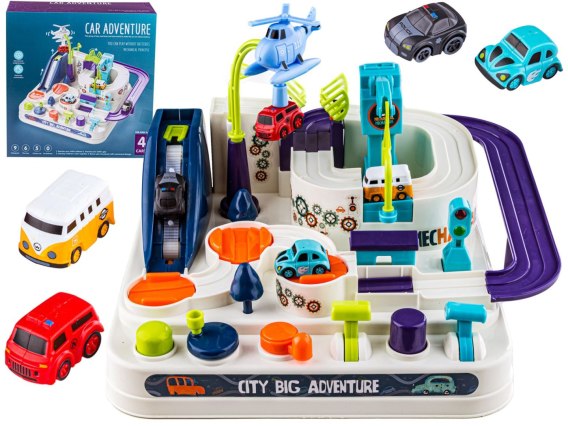 Tor przeszkód to zabawka pełna atrakcji - zaprojektowana w ten sposób aby przeprowadzić samochodzik aż do mety ale używając specjalnych przycisków! Samochodziki w trakcie "przeprawy" muszą nie raz zmienić kierunek jazdy, czy też pokonać m.in. zjeżdżalnię lub most zwodzony.