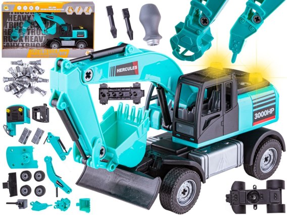 Rozkręcany pojazd to idealna zabawka dla małych majsterkowiczów. Zestaw ten rozwija kreatywność, logiczne myślenie i zdolności manualne. W skład zestawu wchodzi mnóstwo części, m.in. koła, śruby, elementy składowe potrzebne do zbudowania koparko-ładowarki z funkcją spycha.