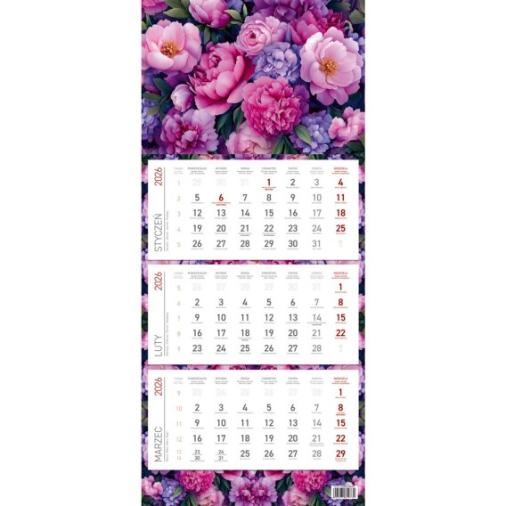 Kalendarz trójdzielny ekonomiczny KWIATY 2026 KS045B Wokół Nas