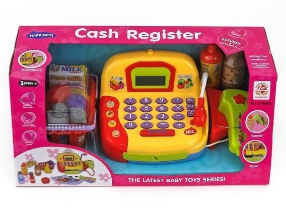 kasa na baterie, światło,dźwięk, akcesoria; 42x20x18cm O/Box