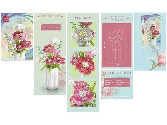zestaw klocków 866szt, kwiaty w wazonie, wym.rozłożonego 40,7x23,7cm; 19,7x10,4x9cm, Box