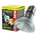 Komodo Halogen Spot to doskonałe połączenie punktowego halogenu grzewczego z cechami żarówki podczerwonej i neodymowej. Dzięki zwiększonej dawce podczerwieni halogen w 90% wykorzystuje moc elektryczną w emisję ciepła. Pozostałe 10% w emisje światła o szerokim spektrum barw. Halogen dodatkowo emituje fale UVA oraz tworzy wyspę ciepła.