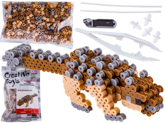 Jest to zabawka do samodzielnego zbudowania. Zestaw składa się z wielu kolorowych, plastikowych koralików i pozwala na zbudowanie ankylozaura. Zabawka ta z pewnością pobudzi wyobraźnię i pomoże rozwinąć zdolności manualne. Super zestaw zapewni każdemu dziecku mnóstwo wesołej zabawy.
