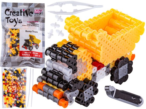 Kolorowe koraliki do prasowania to świetny pomysł na twórczą zabawę - skutecznie zajmują na wiele długich godzin i wyzwalają absolutny wulkan kreatywnych pomysłów! Zestaw pozwala na ułożenie ciężarówki z wywrotką - pojazdu z placu budowy.