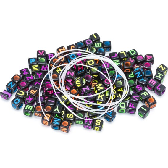 Koraliki literki czarno/kolorowe + sznurek 1m KL3 BREWIS