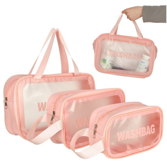 Kosmetyczka podróżna przezroczysta 3 sztuki różowa