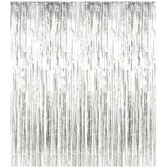 METALIZOWANA Kurtyna w kolorze srebrnym. Duża - rozmiar ok. 1 m x 2 m (szerokość około 100 centymetrów, wysokość około 200 centymetrów).