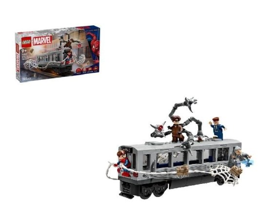 pider-Man kontra Doc Ock -- scena w metrze (76321) to zestaw z pociągiem dla dzieci, które uwielbiają emocjonujące przygody i zabawki LEGO(R) ǀ Marvel. Dzięki nieskończonym możliwościom kreatywnej zabawy i ustawiania na półce ta zabawka konstrukcyjna z superbohaterem świetnie sprawdzi się jako prezent dla chłopców i dziewczynek w wieku od dziewięciu lat. Ten zestaw z metrem jest inspirowany kultową sceną z filmu Spider-Man 2 studia Marvel. Zawiera on cztery minifigurki: J. Jonah Jamesona, ciocię May, Spider-Mana i Doc Ocka. Minifigurka Spider-Mana ma wymienne głowy -- w masce i bez -- oraz dużą pajęczynę, którą można przymocować do pociągu. Minifigurka Doc Ocka ma cztery ruchome macki, w tym dwie z elementami laserowego promienia i dwie z uchwytami, które można przymocować do pociągu. Podnoszony dach zapewnia dostęp do wnętrza pociągu, w którym jest miejsce dla minifigurki. Dodatkową cyfrową zabawę zapewnia intuicyjna aplikacja LEGO Builder, w której konstruktorzy mogą powiększać, obracać modele w 3D i śledzić swoje postępy.
