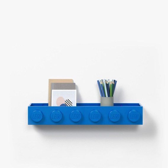 Półka na ścianę Lego(R), podłużna w kolorze niebeskim.