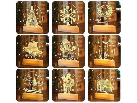 Lampa LED 3D z podstawką, 5 wzorów, ładowarka USB + bat. 3xAAA niedołączone; 17x13x5cm.