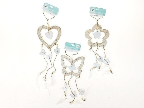 zawieszka łapacz snów, drewniany, z piórkami, 40x15cm; PPB