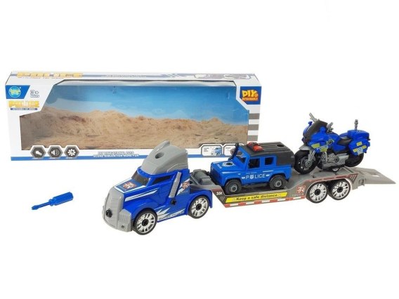 Auto z lawetą i 2 pojazdami do skręcania, światło, dźwięk.