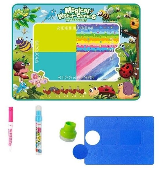 Mata do kolorowania wodnym pisakiem owady 44x32cm Mata do wielokrotnego użycia, uczy dziecko kreatywności. Sposób użycia: