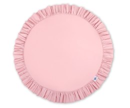Okrągła duża mata z falbanką. Funkcjonalna i praktyczna. Doskonale sprawdzi się jako dywanik, mata do zabawy lub "podłoga" baldachimu zawieszonego na suficie. Już od pierwszych miesięcy może służyć jako mata do leżenia na brzuszku. Mata posiada miękki materacyk, które świetnie izoluje od twardej i zimnej podłogi. Okrągła mata to również świetne miejsce do zabawy i odpoczynku. Wykonana z tkaniny 100% bawełnianej, posiadającej atest Okotex. Mata jest rozbieralna, dzięki czemu łatwo wyprać sam pokrowiec. Wkładka maty wykonana jest z nowoczesnego antyalergicznego atestowanego surowca.