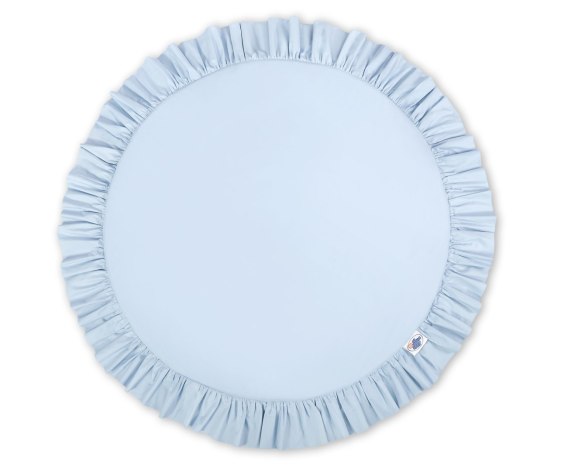 Okrągła mata z falbanką. Funkcjonalna i praktyczna. Doskonale sprawdzi się jako dywanik, mata do zabawy lub "podłoga" baldachimu. Już od pierwszych dni życia może służyć jako mata do leżenia na brzuszku. Posiada miękkie wypełnienie, które świetnie izoluje od twardej i zimnej podłogi. Okrągła mata to również świetne miejsce do zabawy i odpoczynku. Wykonana z tkaniny 100% bawełnianej, posiadającej atest Okotex. Mata jest rozbieralna, dzięki czemu łatwo wyprać sam pokrowiec. Wkładka maty wykonana jest z nowoczesnego antyalergicznego atestowanego surowca.