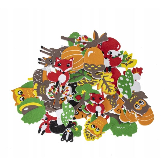 Naklejki z pianki dla dzieci LAS ZWIERZETA JESIEN 48szt BREWIS