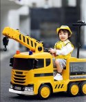 MEGA DŹWIG Z RUCHOMYM HAKIEM w pełnej wersji napędzana dwoma mocnymi silnikami 45 W, z całą pewności zainteresuje młodego strażaka. Zasilanie pojazdu stanowi akumulator 12V 10 Ah co stanowi atut tego pojazdu.
