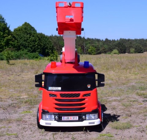 OLBRZYMIA STRAŻ Z ARMATKĄ WODNĄ NA AKUMULATOR+ PODEST DLA RODZICA , PILOT, RĄCZKA/LBB911
