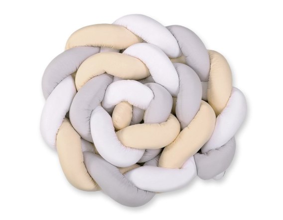 Ochraniacz warkocz pleciony do łóżeczka XXL - biały-szary-beżowy