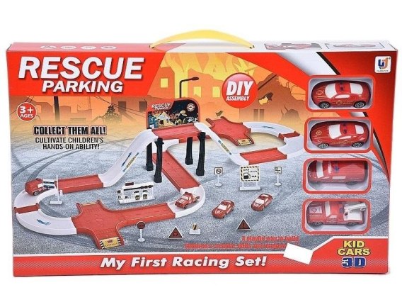 parking straży pożarnej, 4 pojazdy, wymiary rozłożonego 89x61x13cm; 45x27x6,5cm, W/B