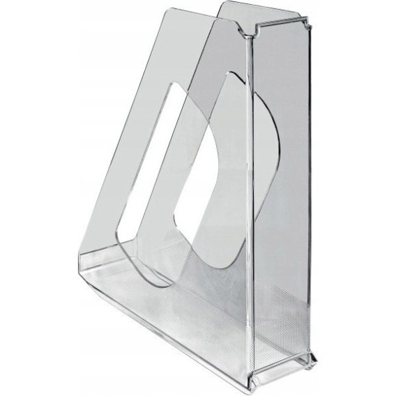 Wysokie, cześciowo wyciete ścianki boczne pozwolą na latwy dostep do zawartości, chroniąc ją jednocześnie przed zniszczeniem. Ten przezroczysty pojemnik z ozdobnym wzorem w podstawie doda stylu Twojemu miejscu pracy w domu lub w biurze. Wspaniale pasuje do pozostalych artykulów na biurko z linii Europost.