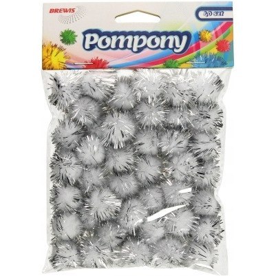 Pompony metalizowane, rozmiar 2cm, opakowanie 40 sztuk, kolor srebrny.
