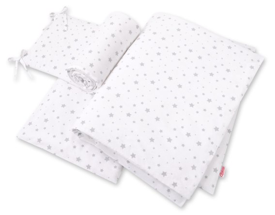Pościel 3-cz z ochraniaczem - mini gwiazdki szare na białym tle
