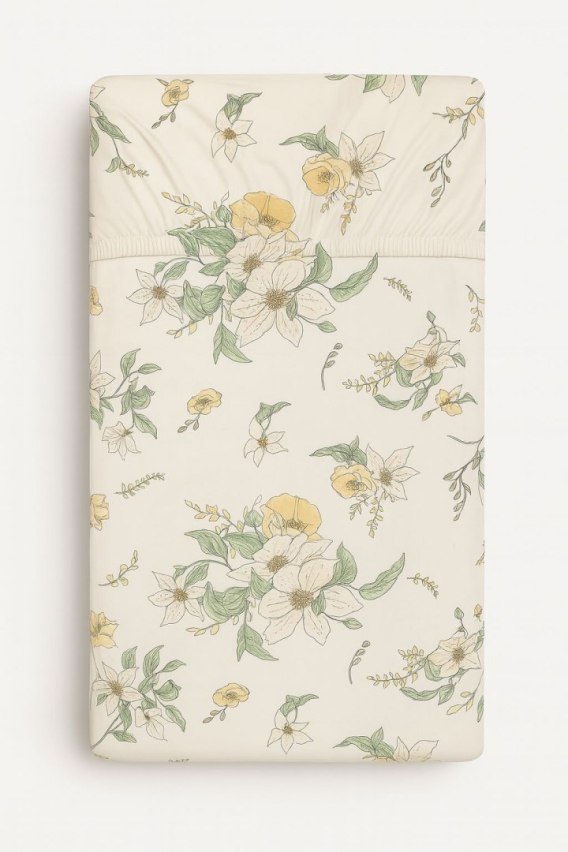 Prześcieradło bawełniane z gumką do łóżeczka 120x60 cm - clematis on beige