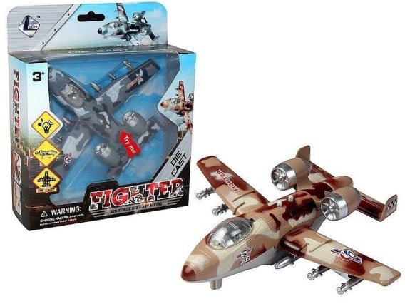 samolot metalowy, światło, dźwięk; 21x17,5x6cm, W/B