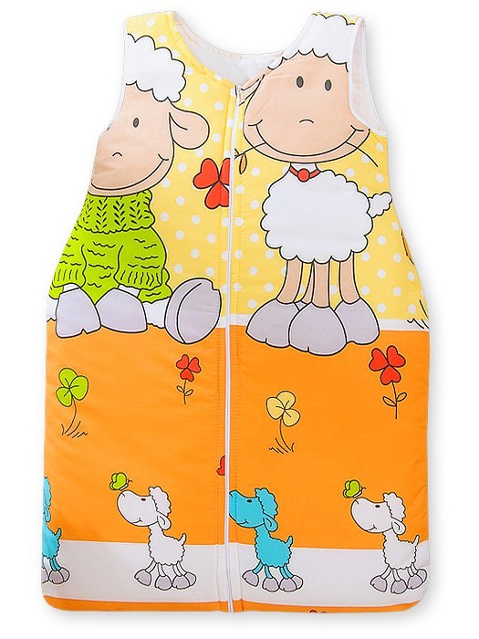 Śpiworek dla dzieci bawełniany M 6-12 mcy TOG 2.5 całoroczny ocieplany owieczki pomarańczowo-żółte